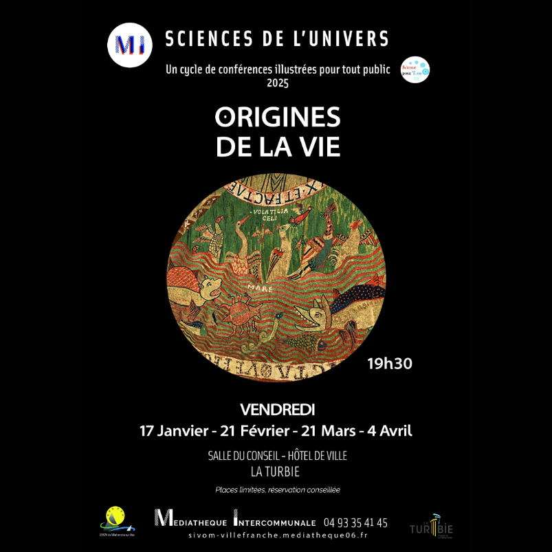 Le SIVOM de Villefranche-sur-Mer et notre commune sont heureux de vous convier au quatorzième cycle des conférences « Sciences de l’Univers » pensé par Alessandro Morbidelli, astronome, membre associé de l’Académie des Sciences & professeur au Collège de France :